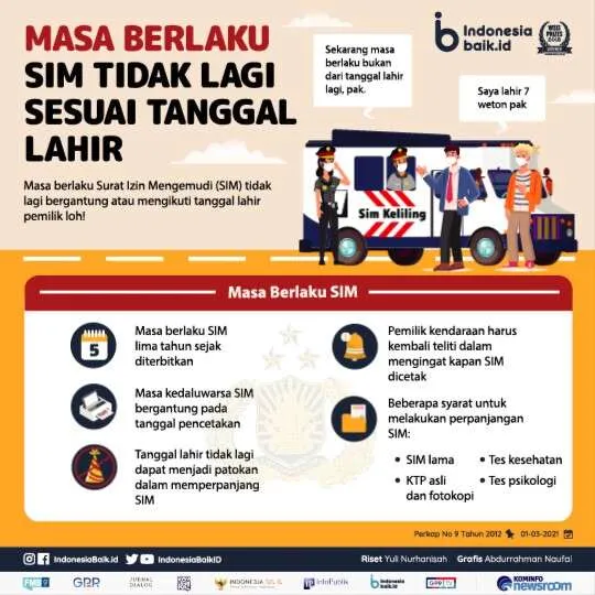 Indonesiabaik.id - Direktorat Lalu Lintas Polda Metro Jaya mengingatkan masa berlaku Surat Izin Mengemudi (SIM) tidak lagi bergantung atau mengikuti tanggal lahir pemilik alias tertanggung. Hal itu tertuang dalam surat telegram korlantas nomor ST/2664/X/Yan.1.1/2019