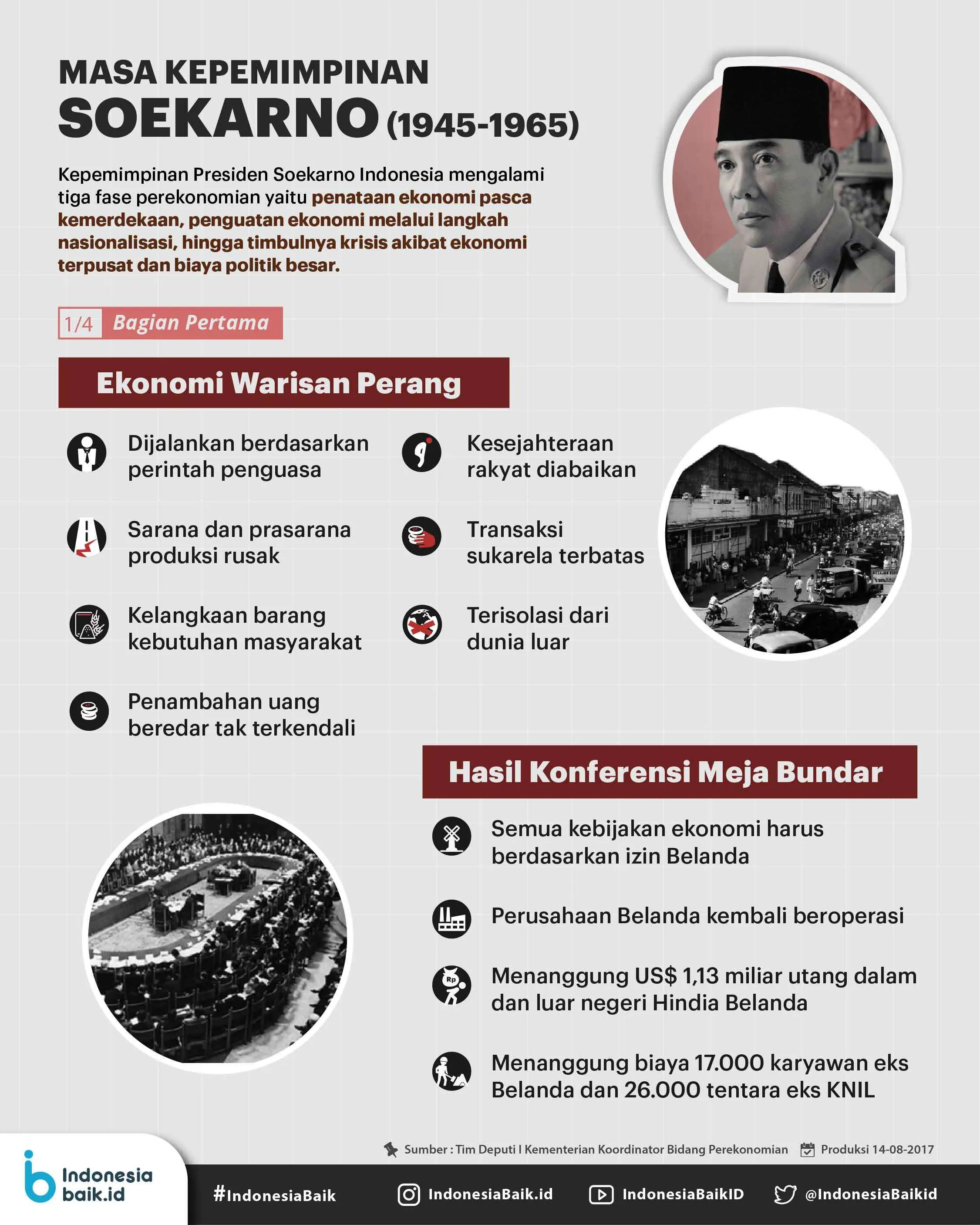 Kondisi perekonomian Indonesia di masa Kepemimpinan Soekarno mengalami tiga tahap yang dimulai