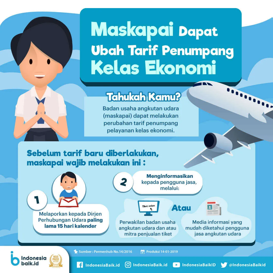 Terkait bahwa maskapai dapat mengubah besaran tarif penumpang pelayanan kelas ekonomi, hal itu sah saja. Karena telah diatur dalam Permenhub Nomor 14 Tahun 2016 tentang Mekanisme Formulasi Perhitungan dan Penetapan Tarif Batas Atas dan Tarif Bawah Penumpang Pelayanan Kelas Ekonomi Angkutan Udara Niaga Berjadwal Dalam Negeri.