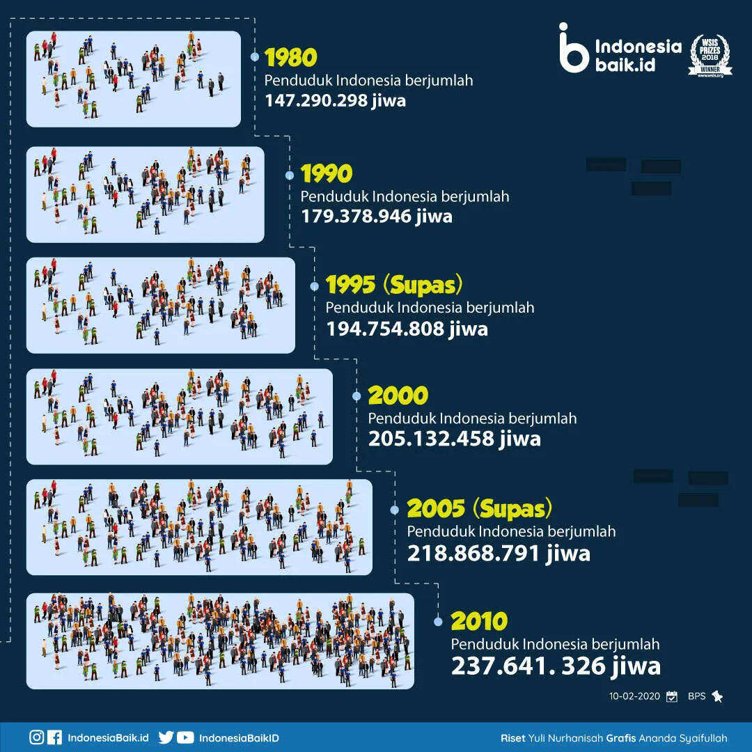 - Tahun 1980= Penduduk Indonesia berjumlah 147.290.298 jiwa