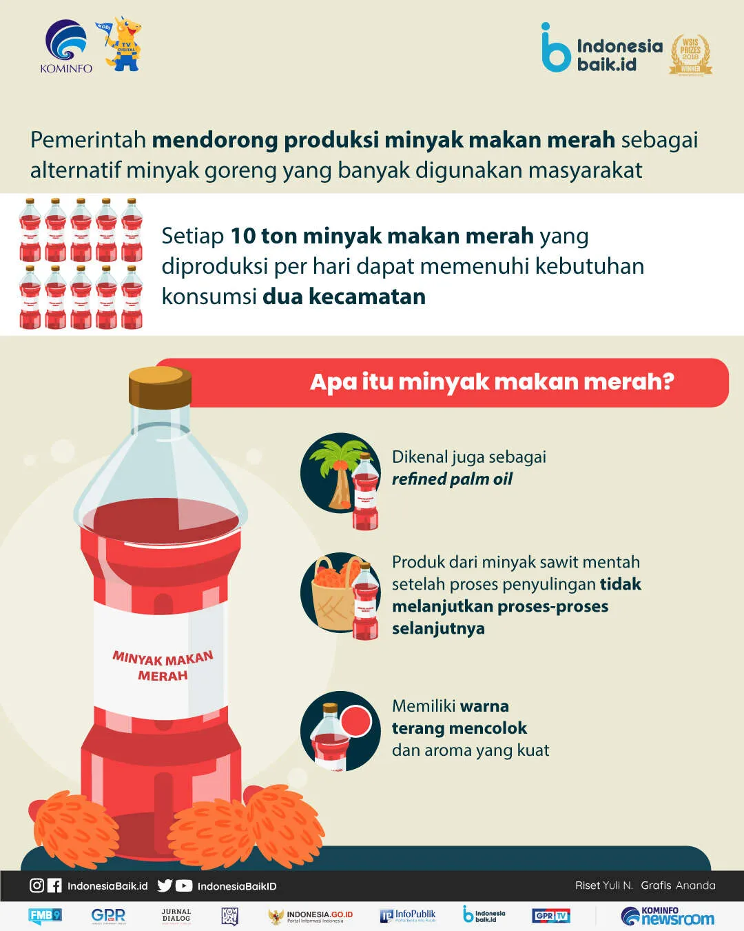 Indonesiabaik.id - Pemerintah mendorong produksi minyak makan merah berbasis koperasi, sebagai alternatif minyak goreng yang banyak digunakan masyarakat. Pasalnya, minyak makan merah diklaim lebih sehat dibanding minyak goreng sawit.