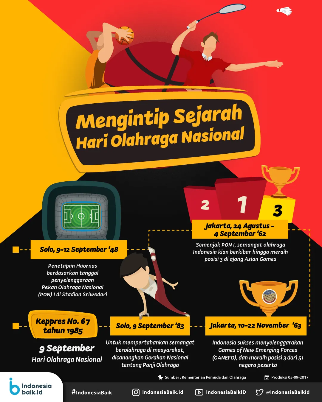 Tahukah kamu jika tanggal 9 September diperingati sebagai hari olahraga nasional. Penetapan Haornas tersebut berdasarkan tanggal penyelenggaraan Pekan Olahraga Nasional (PON) pertama di Stadion Sriwedari, Solo 9 -12 September 1948.