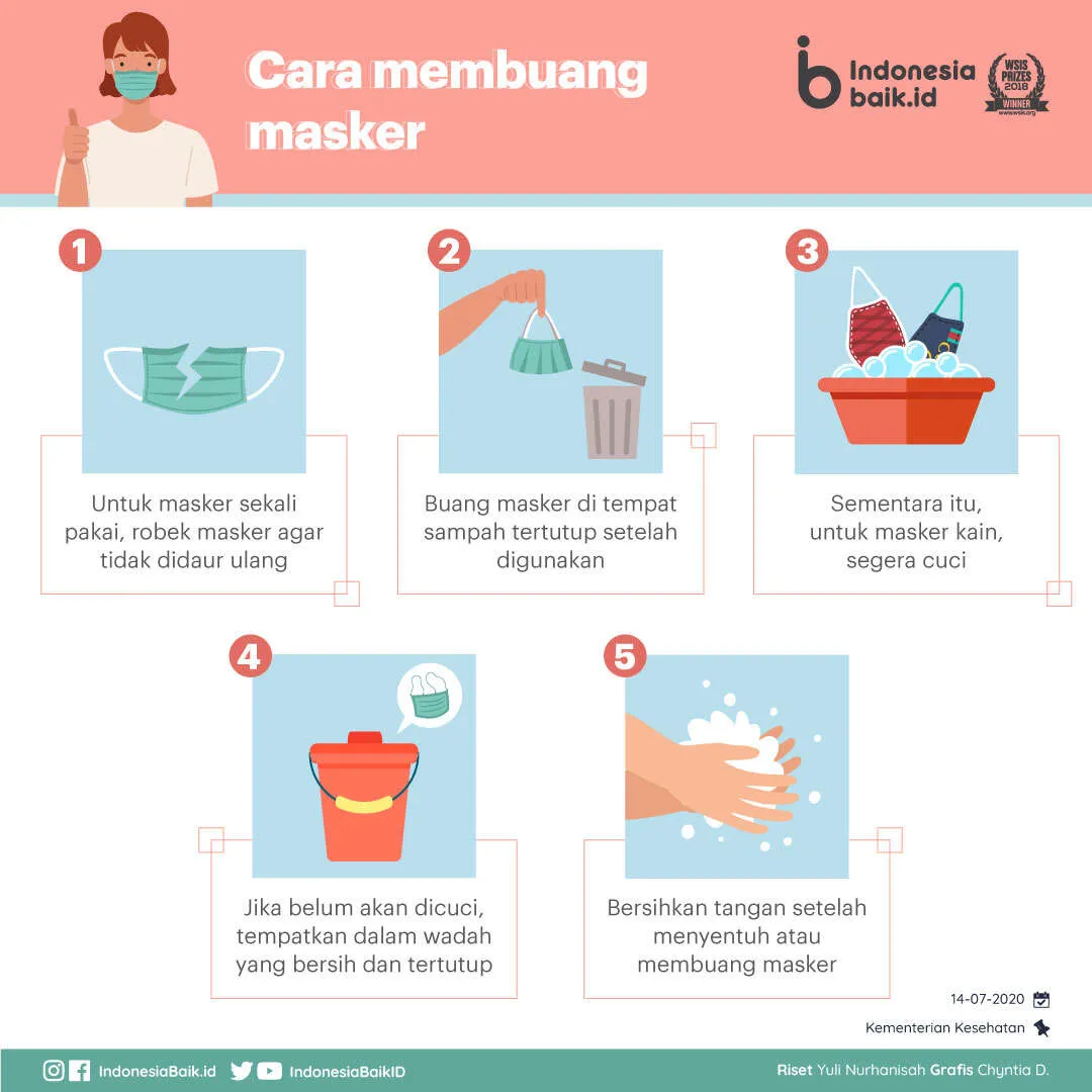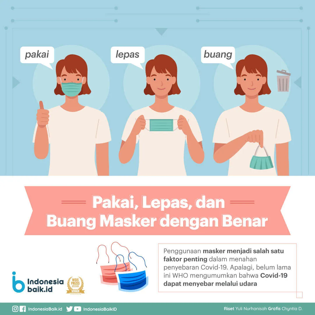 - Buang masker di tempat sampah tertutup setelah digunakan.