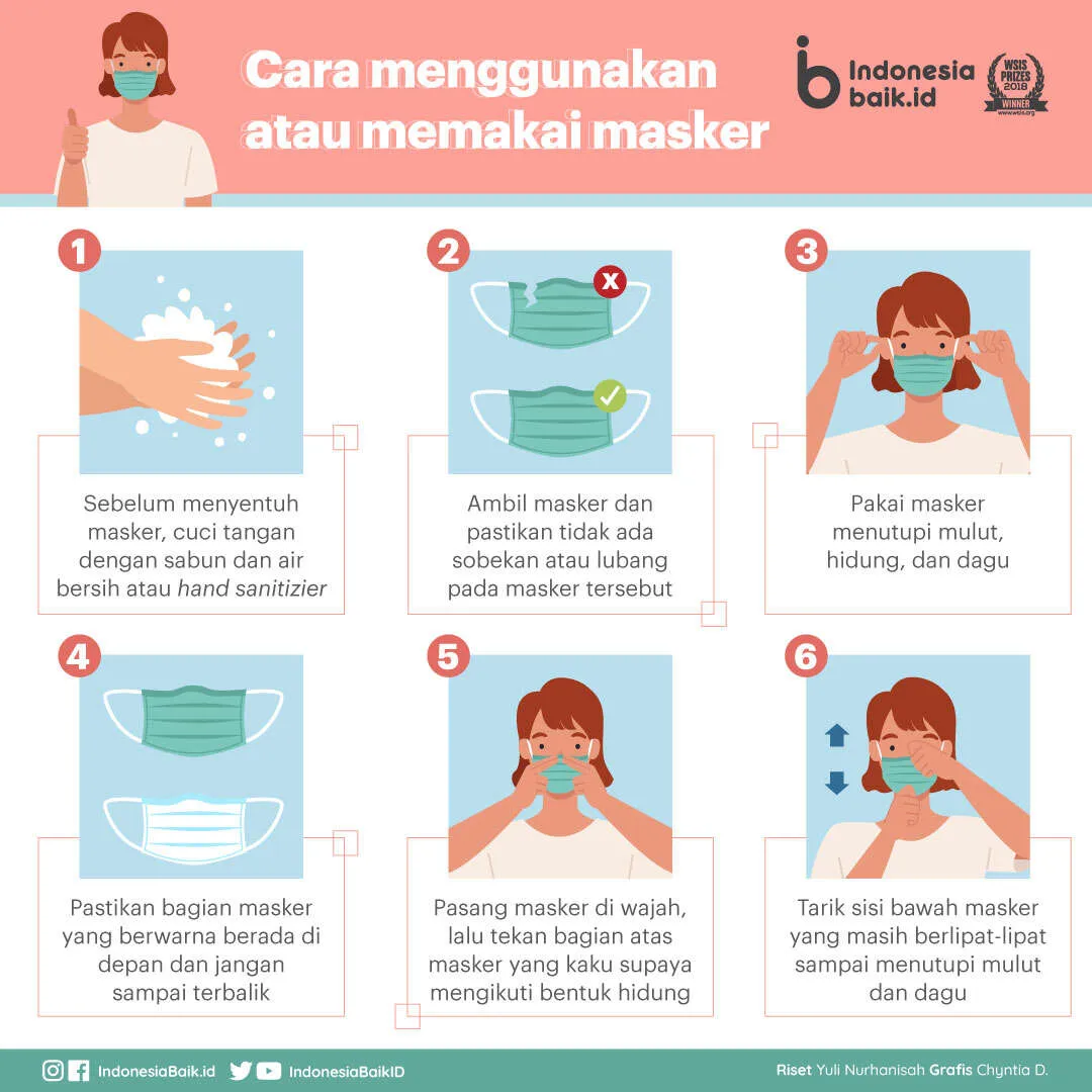 - Setelah diperoleh masker dalam kondisi baik, pakai dengan benar.