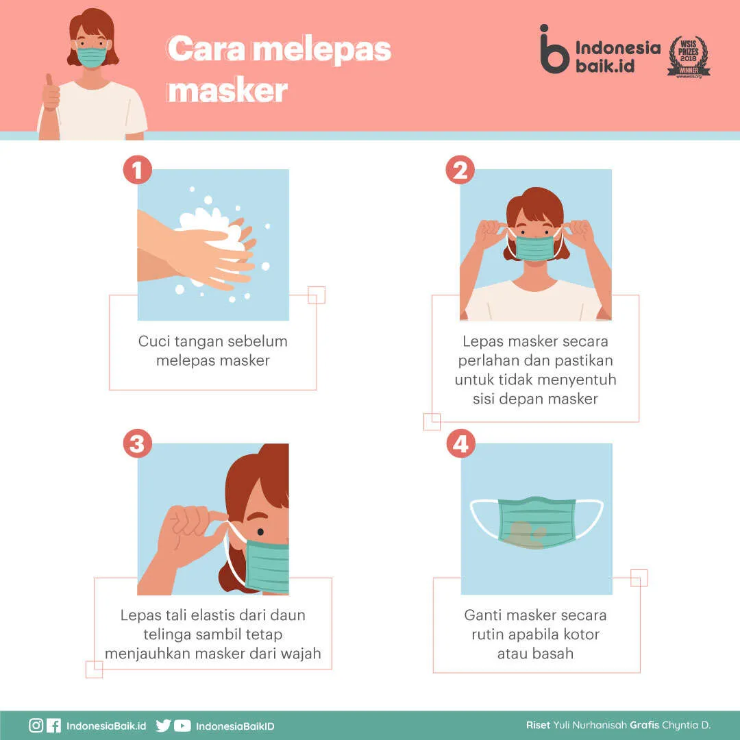 - Cuci tangan sebelum melepas masker