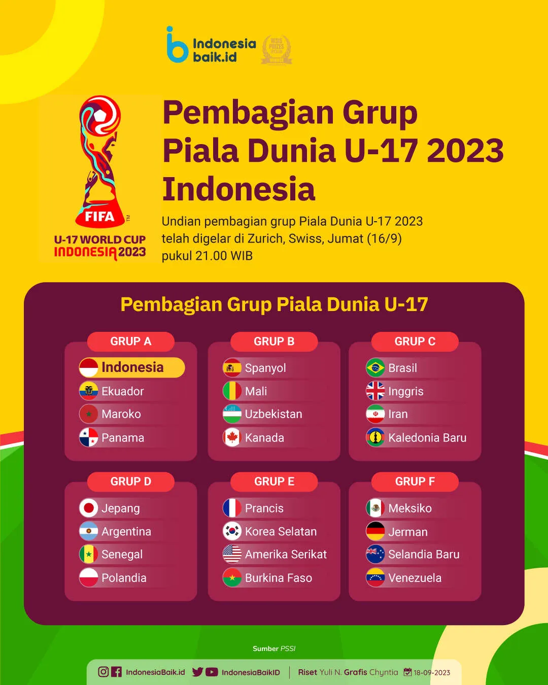 Indonesiabaik.id - Pengundian Piala Dunia FIFA U-17 Indonesia 2023 telah dilakukan (16/9), yang membuka jalan menuju kemenangan bagi para pemain muda terbaik dunia serta melahirkan bintang-bintang baru.