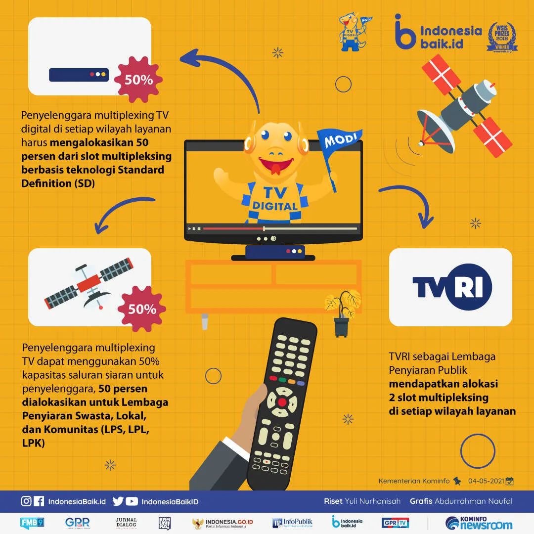 Penyelenggara multiplexing TV digital di setiap wilayah layanan harus mengalokasikan 50 persen dari slot multiplexing berbasis teknologi Standard Definition (SD) sebagai infrastruktur penyelenggara penyiaran atau konten di luar grup yang bersangkutan.