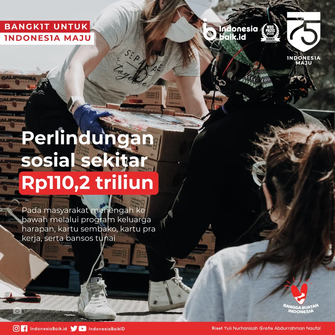 Kemudian, untuk perlindungan sosial pada masyarakat menengah ke bawah sekitar Rp 110,2 triliun. Anggaran dialokasikan untuk program keluarga harapan, kartu sembako, kartu prakerja, serta bansos tunai.