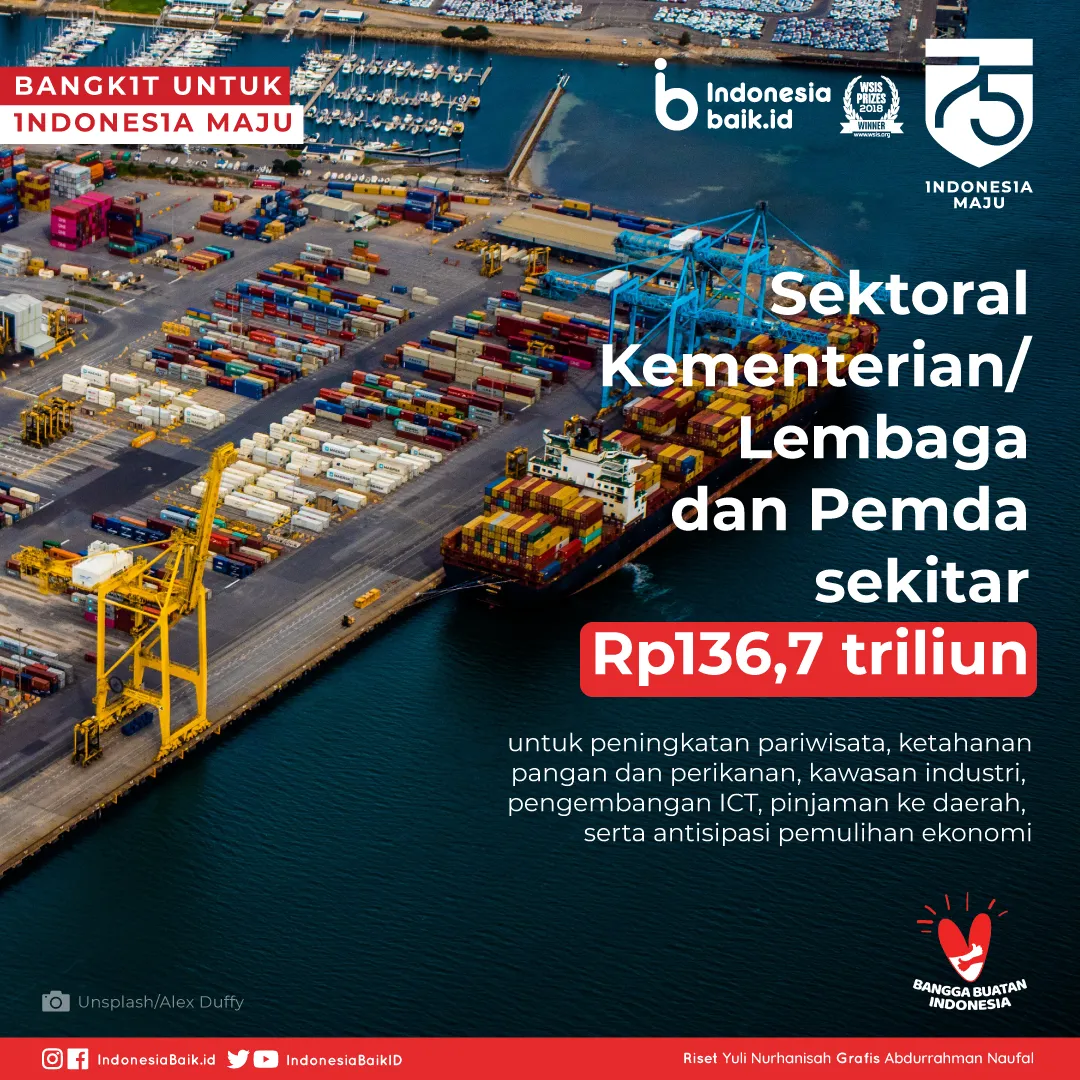 Anggaran bantuan sektoral kementerian/lembaga dan pemerintah daerah ditetapkan sekitar Rp 136,7 triliun. Dana utamanya ditujukan untuk peningkatan pariwisata, ketahanan pangan dan perikanan, kawasan industri, pengembangan ICT, pinjaman ke daerah, serta antisipasi pemulihan ekonomi.