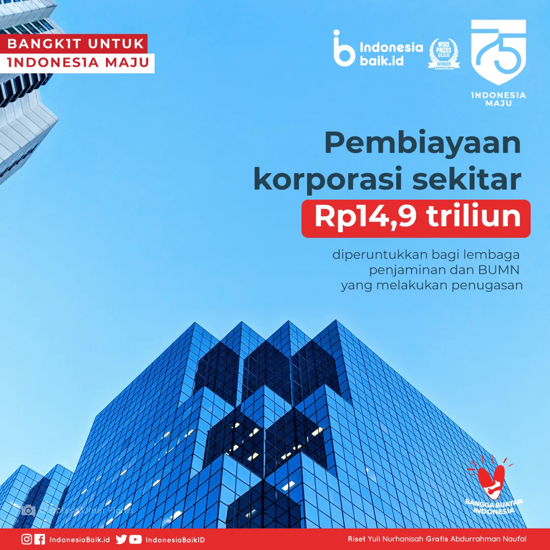 Ada pula bantuan UMKM sekitar Rp 48,8 triliun. Dukungan itu diberikan melalui subsidi bunga KUR, pembiayaan UMKM, penjaminan serta penempatan dana di perbankan. Sementara, alokasi anggaran pembiayaan korporasi sekitar Rp 14,9 triliun. Dana diperuntukkan bagi lembaga penjaminan dan BUMN yang melakukan penugasan.