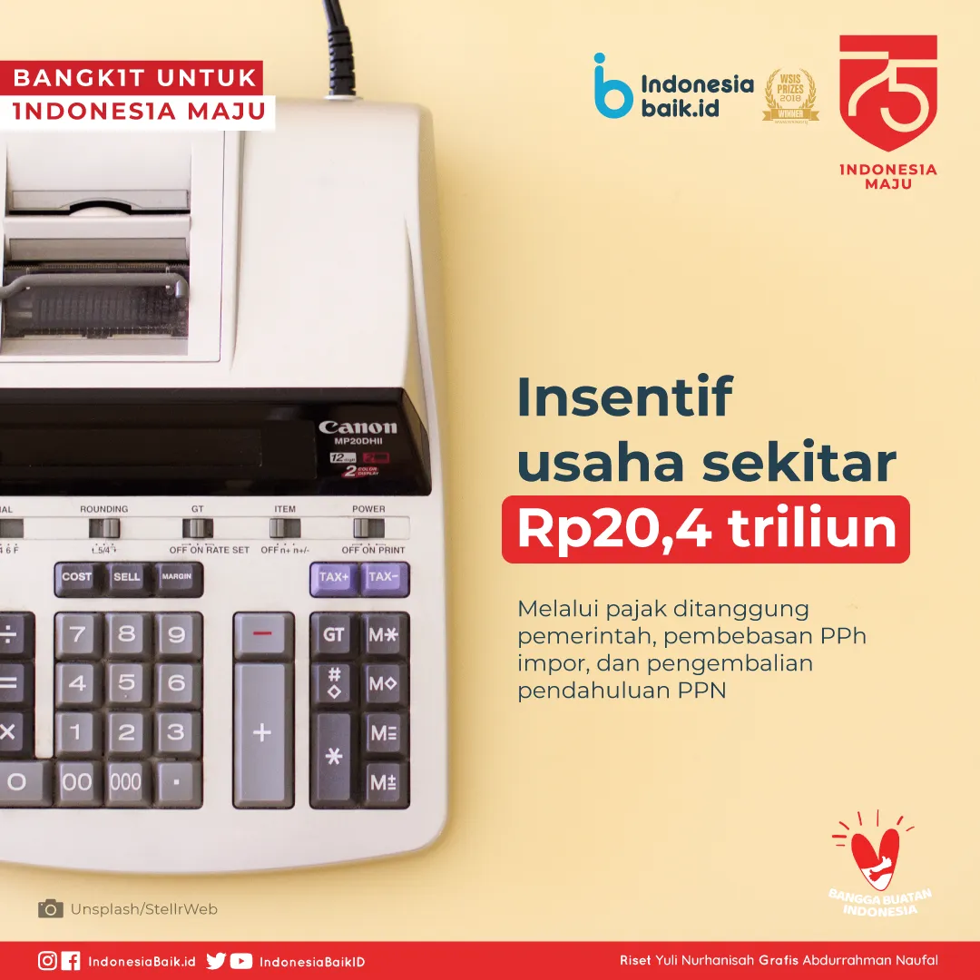 Terakhir, akan ada pos insentif usaha dengan dana sekitar Rp 20,4 triliun. Bantuan akan berbentuk pajak ditanggung pemerintah, pembebasan PPh impor, dan pengembalian pendahuluan PPN.