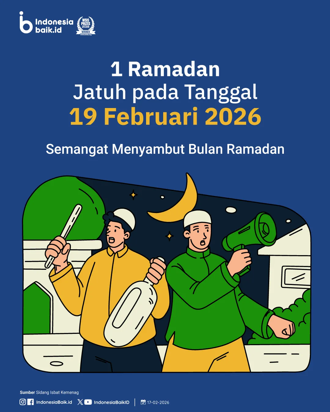 indonesiabaik.id — TOK‼️ Pemerintah resmi menetapkan 1 Ramadan 1447 H jatuh pada hari Kamis, 19 Februari 2026. Yang artinya besok lusa umat Islam di Indonesia mulai menjalankan ibadah puasa Ramadan 🙌