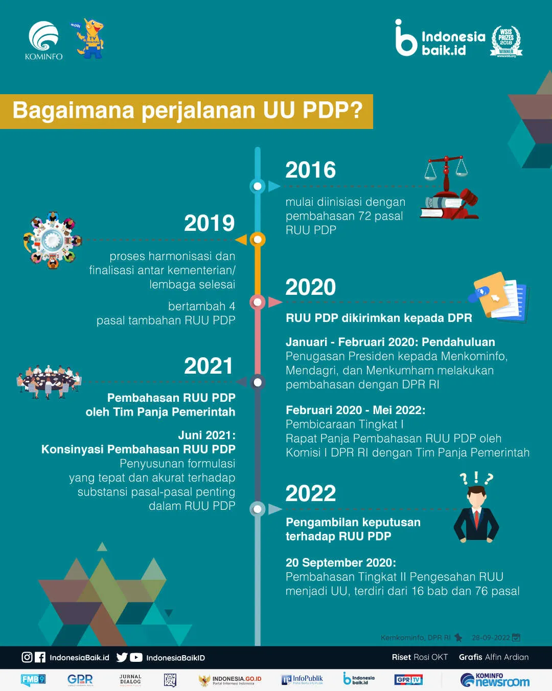 Perjuangan menuju disahkannya RUU PDP menjadi Undang-Undang terus diupayakan hingga 2022, tahapan akhirnya mencapai proses pengambilan keputusan terhadap RUU PDP oleh DPR RI. Pada 20 September 2020, terjadi tahapan Pembahasan Tingkat II yang menghasilkan pengesahan RUU menjadi UU UU PDP dengan isi 16 bab dan 76 pasal.
