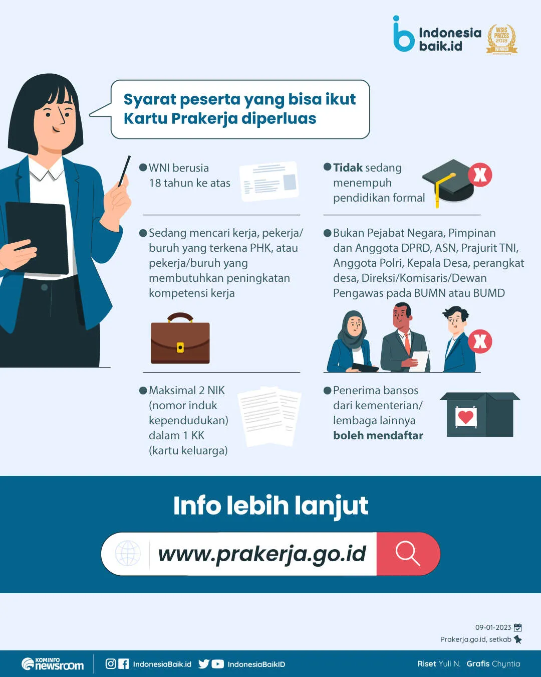 Indonesiabaik.id - Program Kartu Prakerja di 2023 dilanjutkan dengan skema normal yang diatur dalam Perpres Nomor 113 Tahun 2022 berbeda dari tahun-tahun sebelumnya yang berskema semi bantuan sosial (bansos).