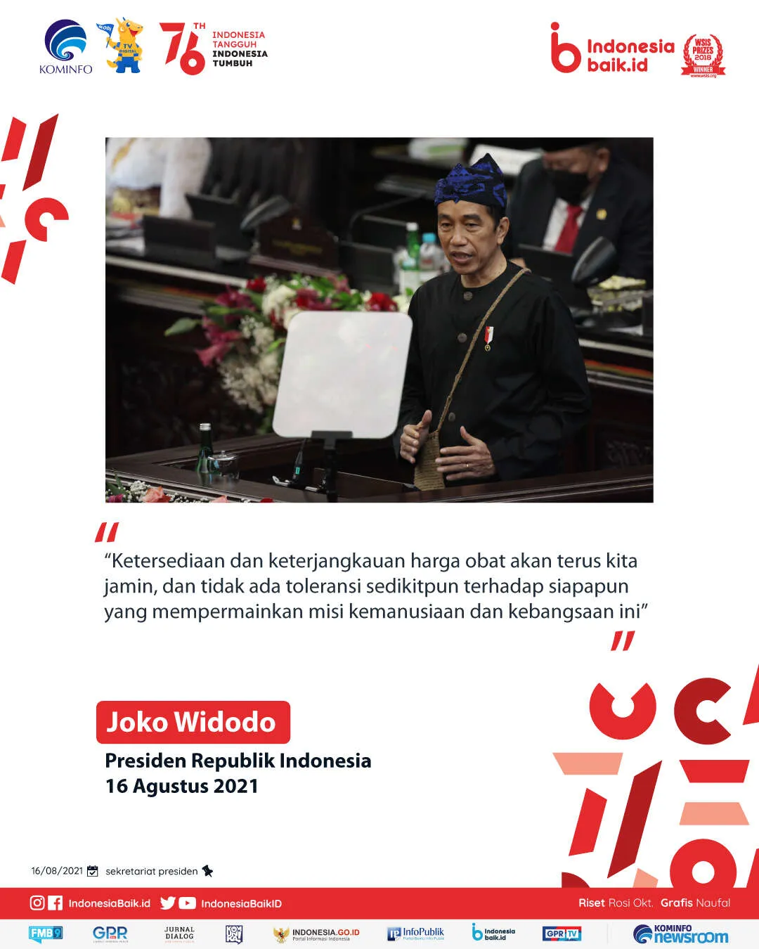 Pidato Presiden RI dalam rangka Sidang Tahunan MPR RI dan Sidang Bersama DPR RI-DPD RI Tahun 2021