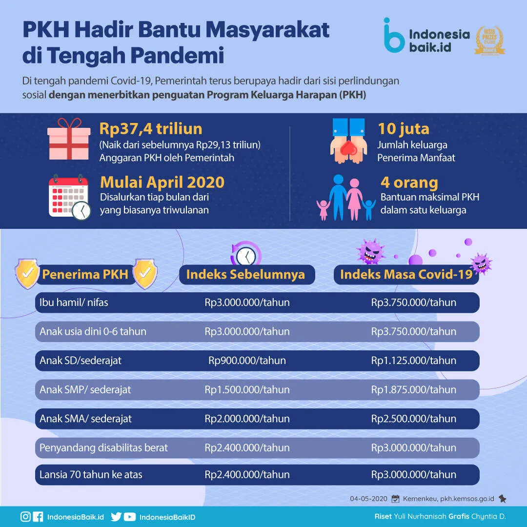 Indonesiabaik.id - Pemerintah terus berupaya dalam menangani dampak pendemi COVID 19 dari sisi perlindungan sosial di antaranya dengan menerbitkan kebijakan penguatan Program Keluarga Harapan (PKH) dan Bantuan Pangan Non Tunai (BPNT) yang sekarang bernama Kartu Sembako.