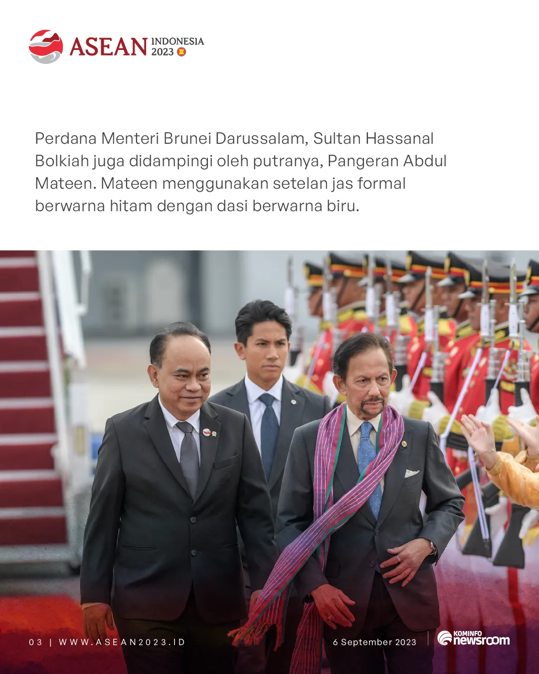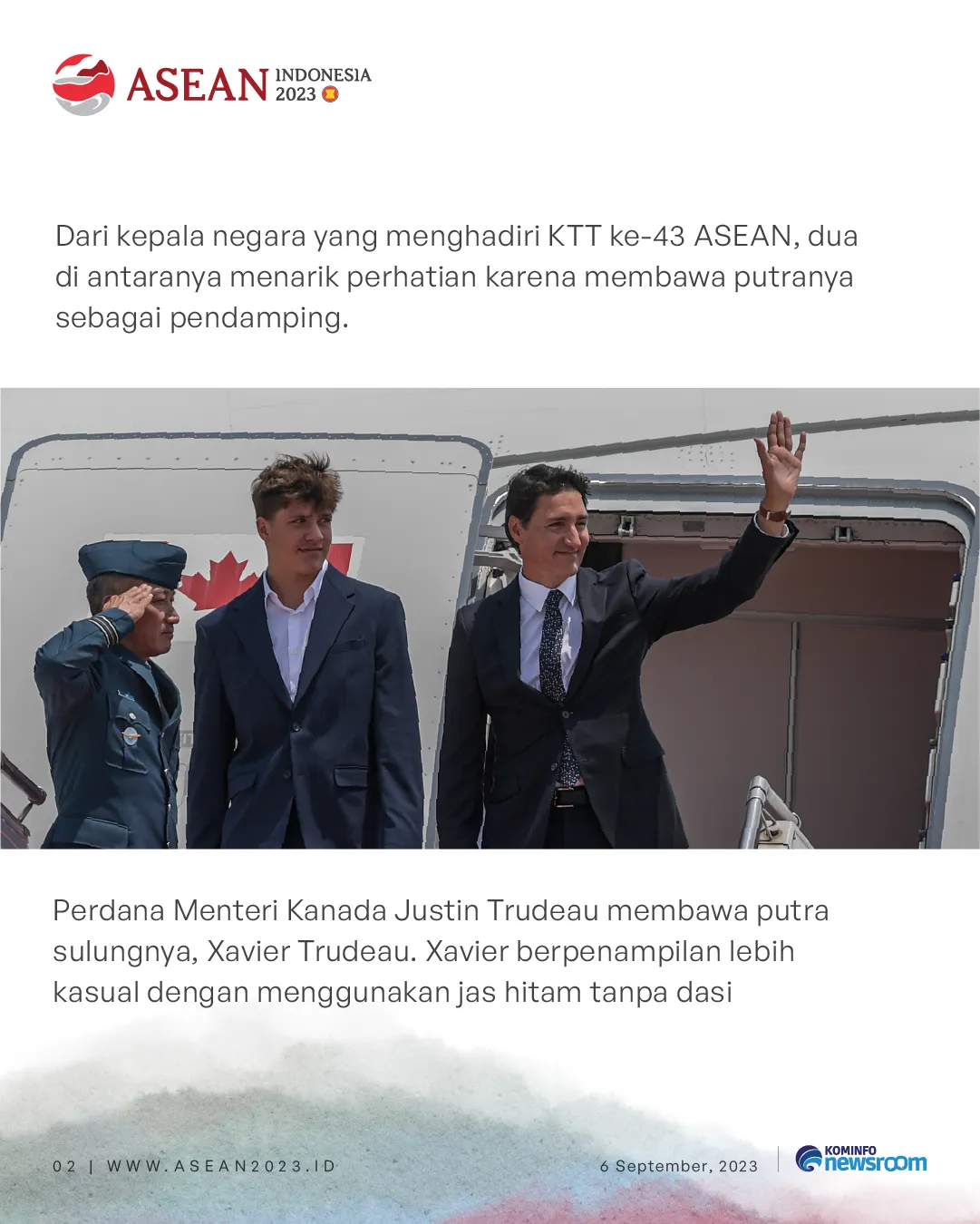 Indonesiabaik.id - Konferensi Tingkat Tinggi Perhimpunan Bangsa-bangsa Asia Tenggara atau KTT ASEAN dimulai pada Selasa (5/9/2023). Di antara para kepala negara maupun kepala pemerintahan, ada dua yang tidak ditemani oleh pasangan. Mereka adalah Sultan Brunei Darussalam Hassanal Bolkiah dan Perdana Menteri Kanada Justin Trudeau.