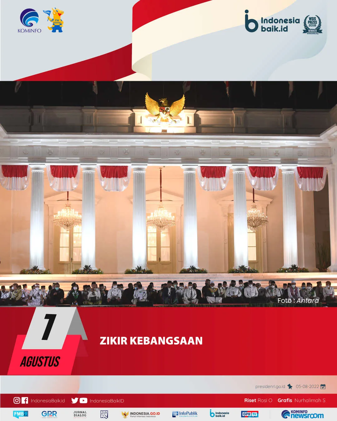 Kemeriahan semakin bertambah dengan berbagai kegiatan kenegaraan yang rangkaiannya akan dimulai dengan acara zikir kebangsaan pada Senin malam, 1 Agustus 2022.