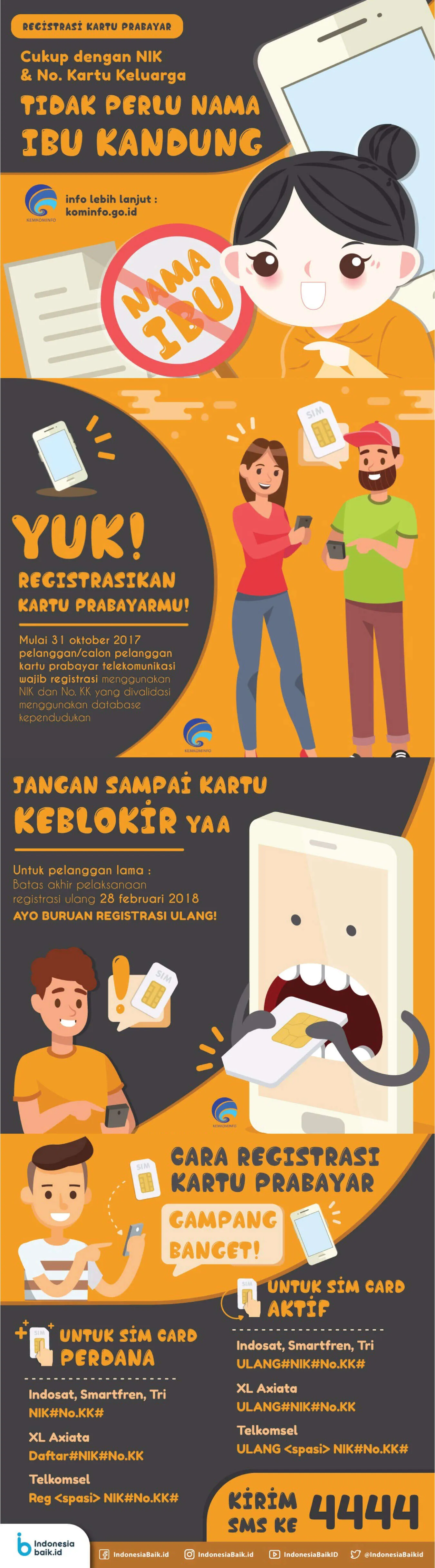 Hai SohIB! Untuk registrasi kartu prabayar cukup dengan NIK & No. Kartu Keluarga. Tidak perlu nama Ibu Kandung! Untuk cara registrasi kartu prabayar itu gampang banget loh SohIB!