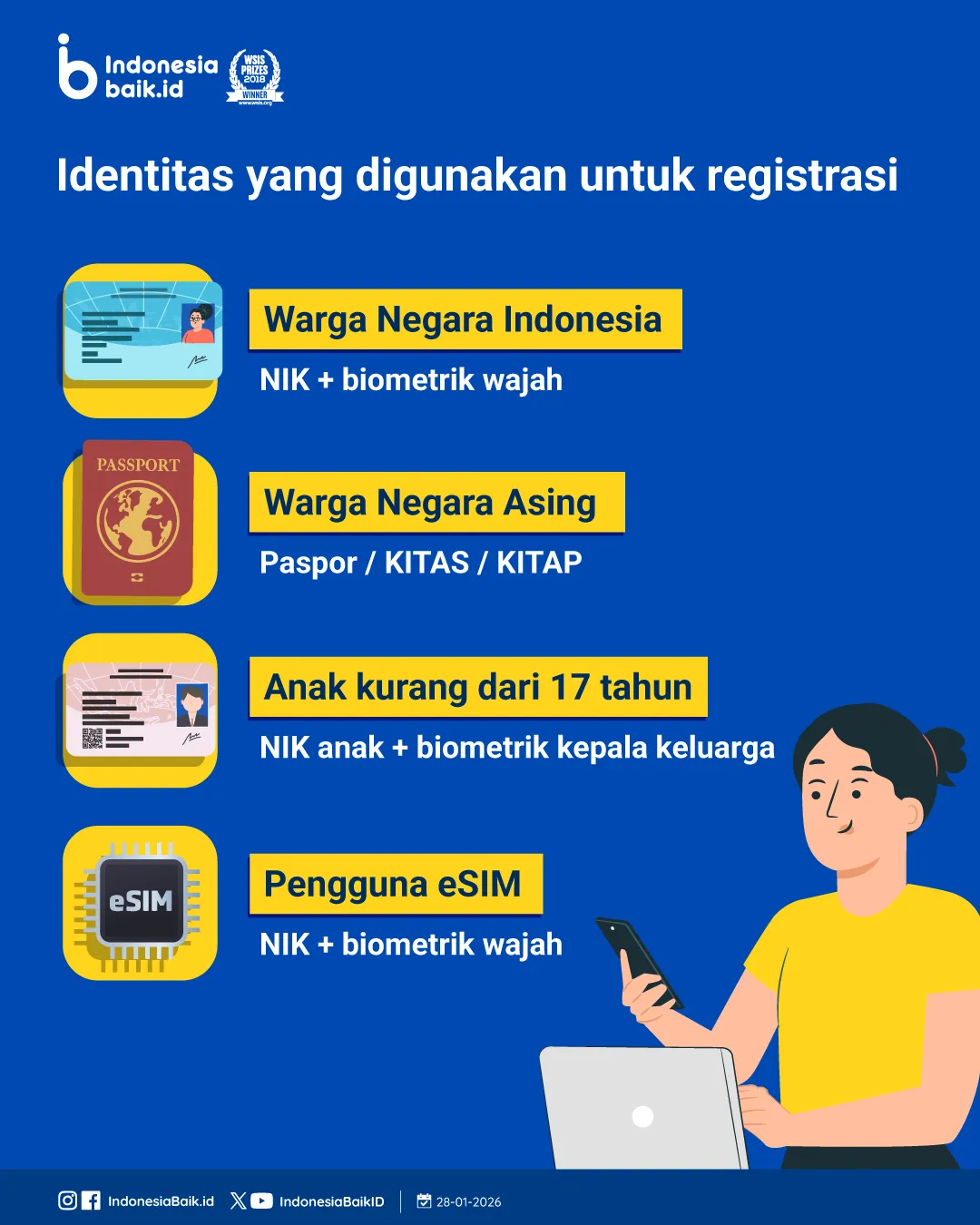 Menteri Komunikasi dan Digital, Meutya Hafid, menegaskan bahwa registrasi pelanggan wajib dilakukan dengan prinsip Know Your Customer (KYC) yang akurat dan bertanggung jawab, termasuk penggunaan teknologi biometrik pengenalan wajah. Langkah ini bertujuan memastikan setiap nomor benar-benar digunakan oleh pemilik identitas yang sah.
