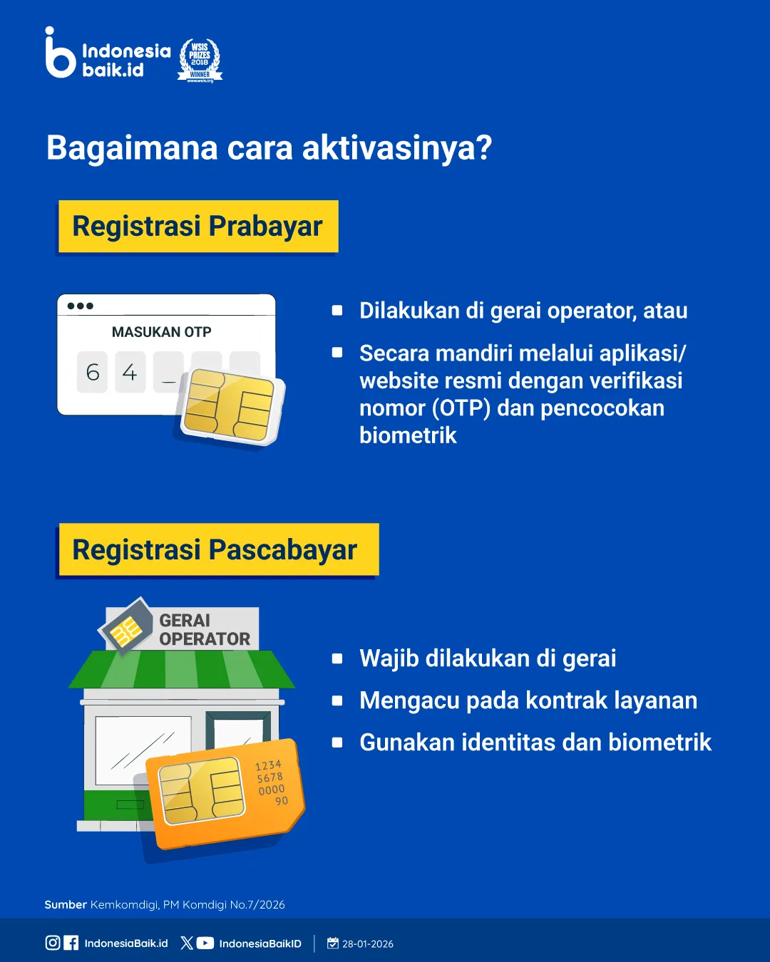 Kebijakan ini diatur dalam Peraturan Menteri Komunikasi dan Digital Nomor 7 Tahun 2026 tentang Registrasi Pelanggan Jasa Telekomunikasi melalui Jaringan Bergerak Seluler. Melalui regulasi ini, registrasi kartu seluler tidak lagi sekadar prosedur administratif, melainkan instrumen perlindungan masyarakat di ruang digital.