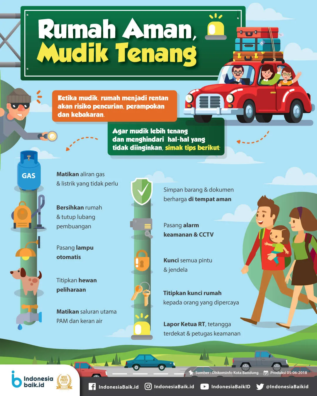 Indonesiabaik.id - Saat mudik, rumah dapat menjadi rentan menjadi sasaran kejahatan dan bencana yang tidak diinginkan seperti perampokan dan kebakaran. Untuk menghindari hal-hal yang tidak diinginkan, ada baiknya bagi Anda dan keluarga yang ingin mudik ke kampung halaman untuk melakukan beberapa tips berikut.