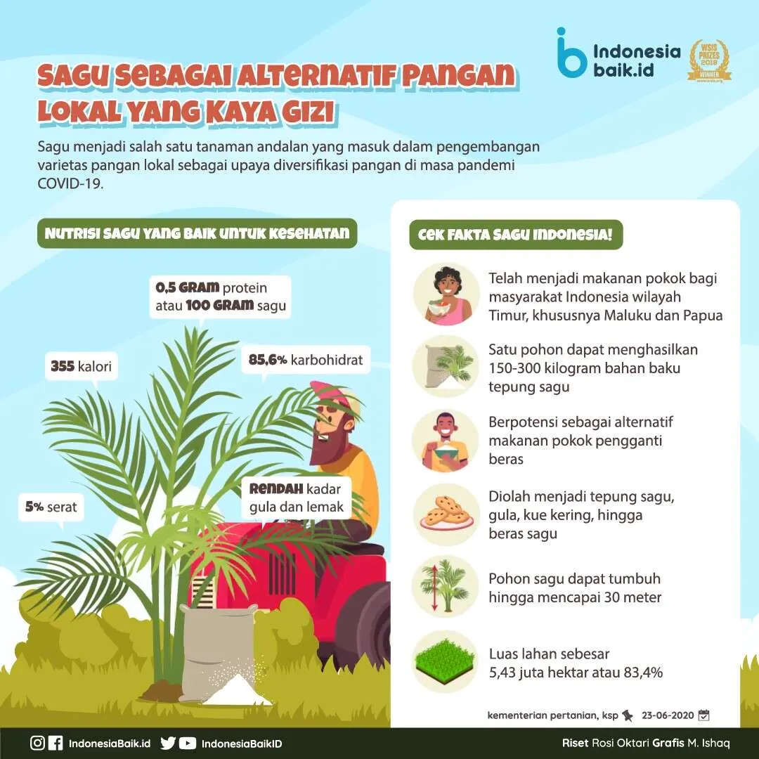 Salah satunya, pemerintah mengembangkan varietas pangan lokal sebagai upaya diversifikasi pangan. Dari banyak pangan lokal, salah satu pangan lokal Indonesia yang memiliki potensi untuk dikembangkan sebagai alternatif makanan pokok pengganti beras adalah sagu.