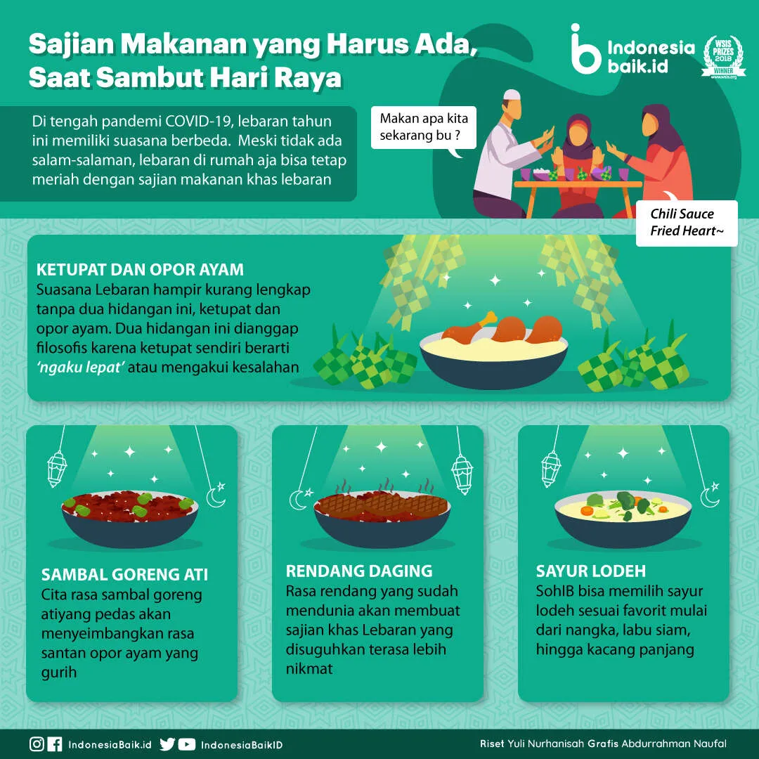 Indonesiabaik.id - Di tengah pandemi COVID-19, lebaran tahun ini memiliki suasana berbeda. Meski tak ada silaturahmi atau salam-salaman, momen lebaran di rumah aja bisa tetap meriah. Ada ragam kue, makanan utama, hingga dessert yang bisa menemani lebaranmu di rumah saja.