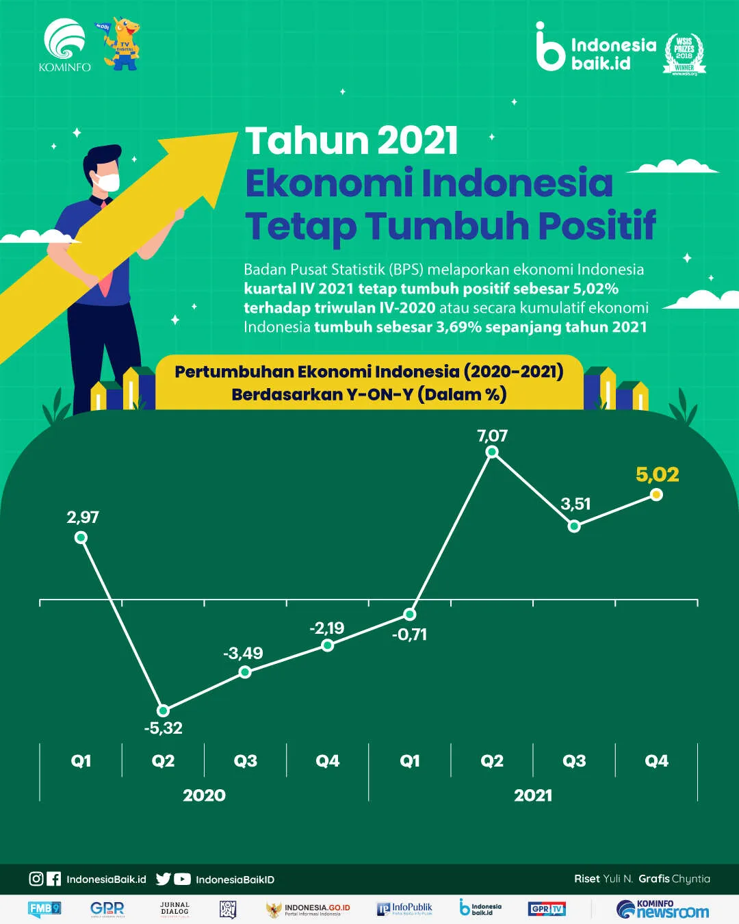Indonesiabaik.id - Badan Pusat Statistik (BPS) melaporkan ekonomi Indonesia triwulan IV-2021 terhadap triwulan IV-2020 mengalami pertumbuhan yang positif dari sebelumnya di Triwulan III-2021.