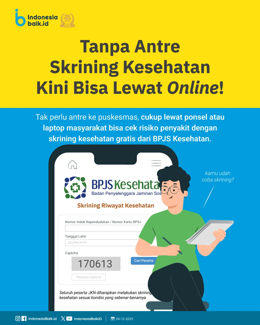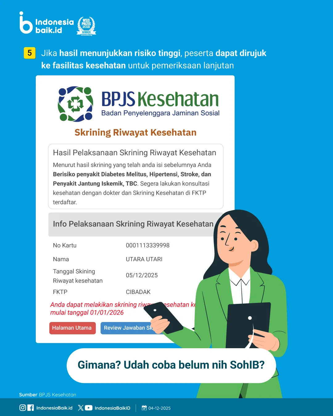 Yuk manfaatkan skrining BPJS buat kenali risiko kesehatanmu sedari sekarang. Semakin cepat tahu, semakin cepat bisa mencegah!