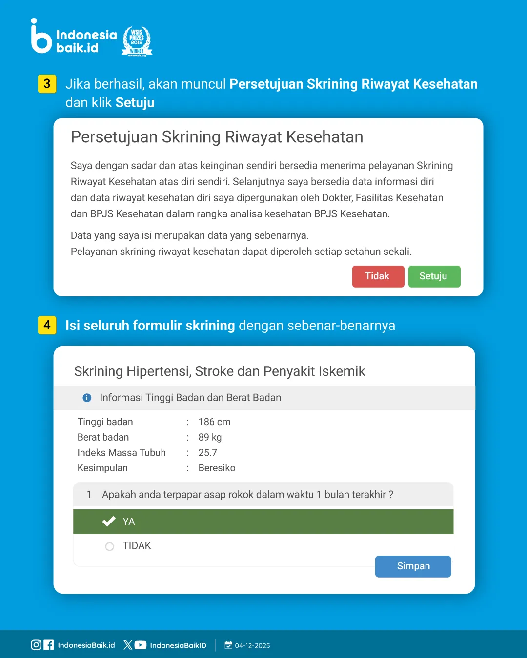 - Isi formulir skrining sesuai kondisi sebenarnya