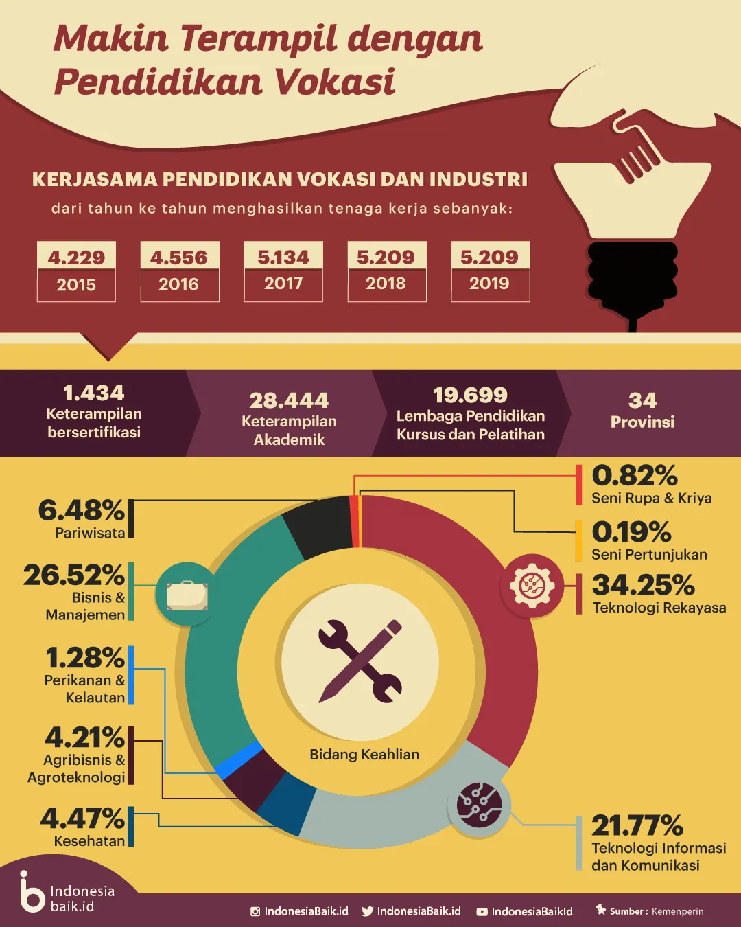 Untuk itu, pemerintah terus melakukan penyelarasaan kurikulum pendidikan agar sesuai dengan kebutuhan industry serta penyediaan workshop, laboratorium, dan teaching factory untuk Pratik kerja industri bagi siswa dan magang industri bagi guru SMK.