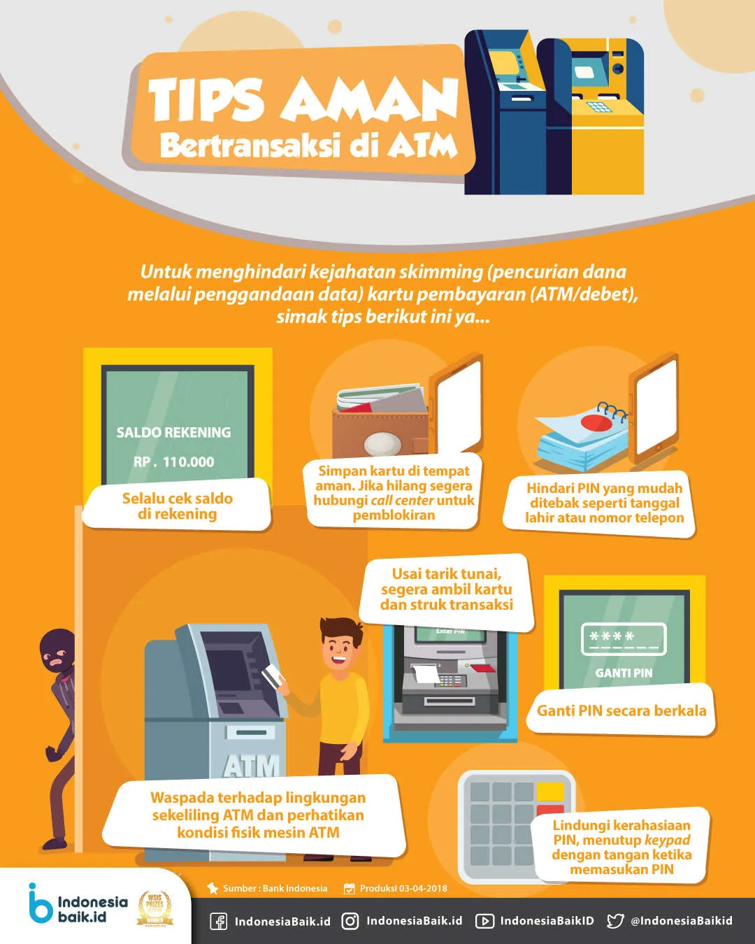 Indonesiabaik.id - Kasus kejahatan skimming yaitu pembobolan dana nasabah bank melalui pencurian dan penggandaan data kartu atm/debit kembali terjadi di Indonesia. Pada pertengahan Maret 2018, sejumlah nasabah Bank Rakyat Indonesia (BRI) di Kediri dan Jakarta menjadi korban dari kejahatan skimming. Lalu bagaimana caranya agar nasabah tak menjadi korban skimming?