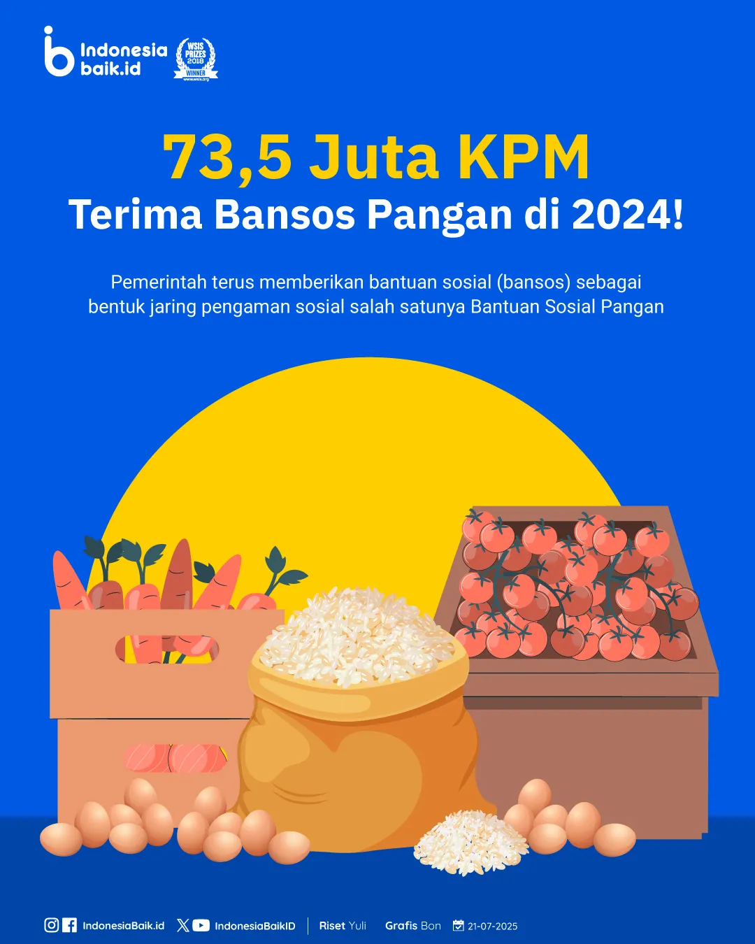 Menurut data Badan Pusat Statistik (BPS) per Februari 2025, sebanyak 73,5 juta Keluarga Penerima Manfaat (KPM) tercatat sebagai penerima Bantuan Sosial Pangan sepanjang tahun 2024.
