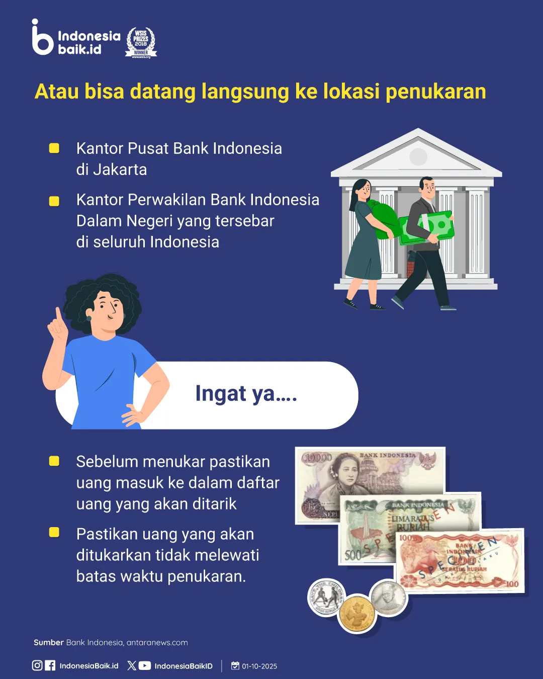 - Periksa batas waktu penukaran agar uang masih bisa diterima untuk ditukar.