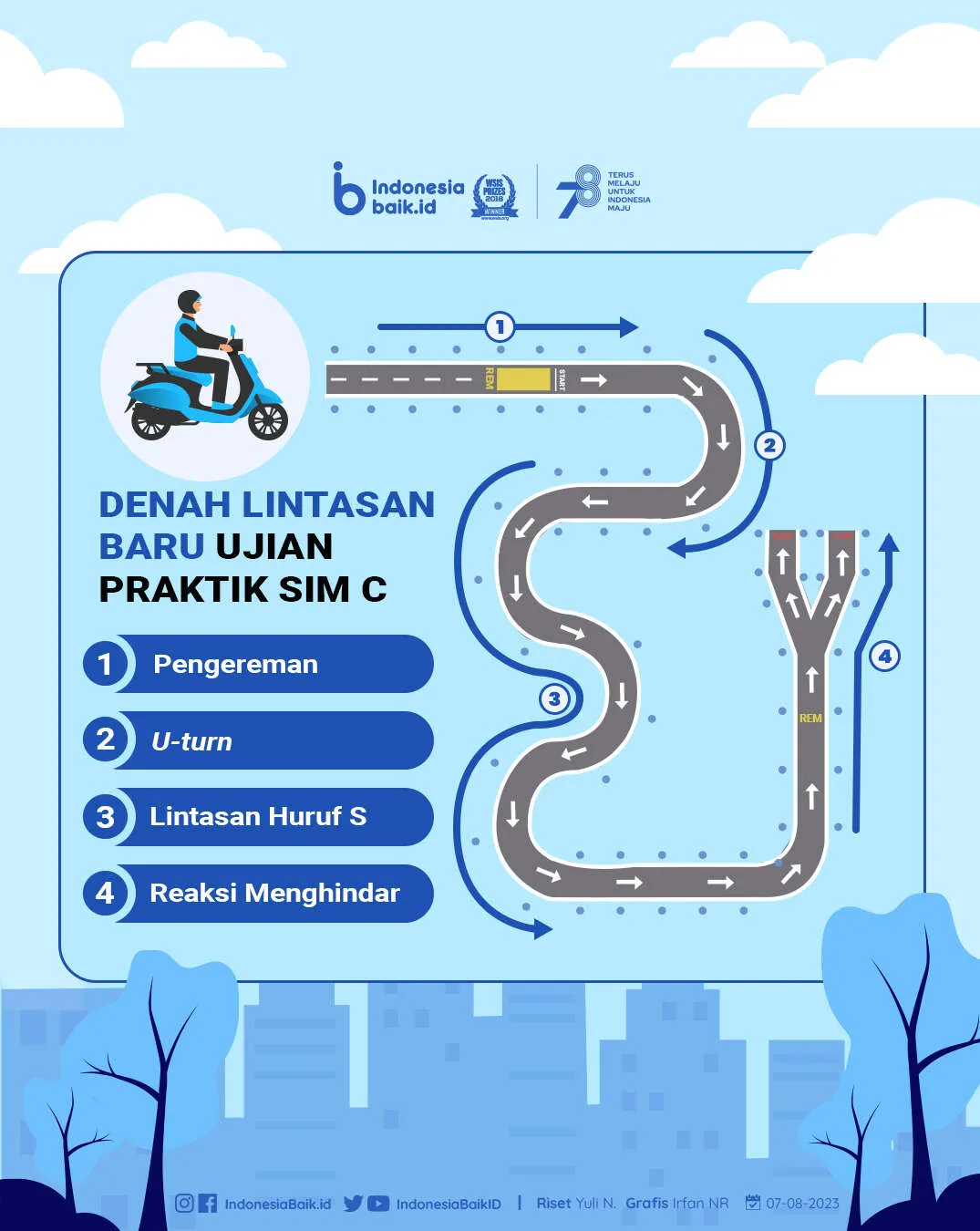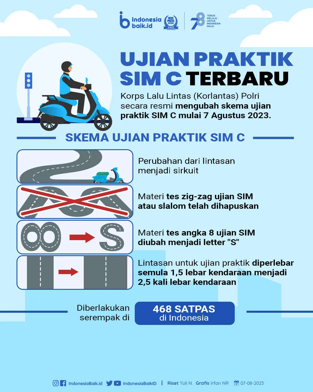 Indonesiabaik.id - Korps Lalu Lintas (Korlantas) Polri secara resmi menghapus tes angka "8" dan zig-zag dari ujian praktik Surat Izin Mengemudi (SIM) C. Sebagai gantinya, Korlantas Polri mengganti tes angka 8 menjadi manuver berbentuk huruf "S".
