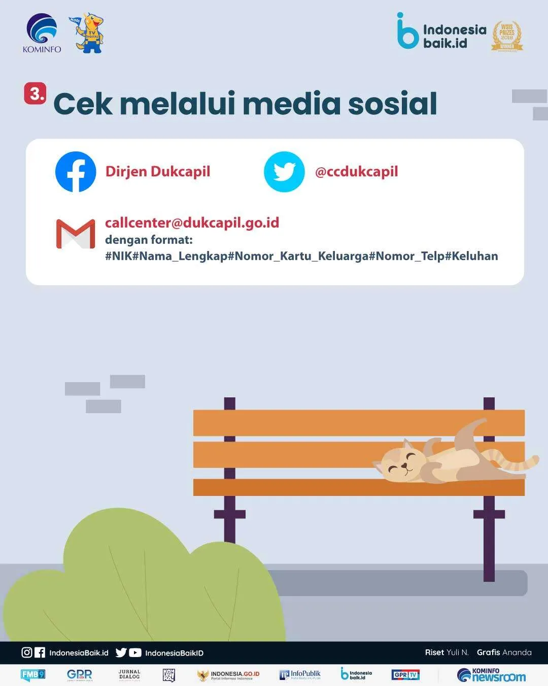 Akses terakhir yang bisa dilakukan adalah melalui media sosial. Akun Facebook resmi Dukcapil adalah di Dirjen Dukcapil, sedangkan untuk akun Twitter resmi Dukcapil ada di alamat @ccdukcapil.