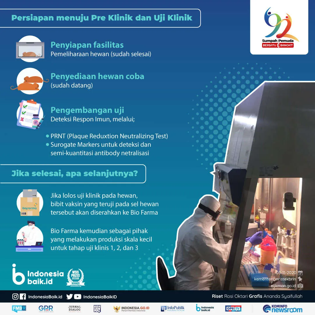 Indonesiabaik.id - Pengembangan vaksin Merah Putih oleh Lembaga Eijkman mulai memasuki tahap uji klinis pada hewan.