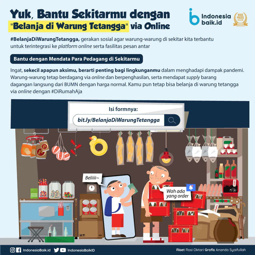 Indonesiabaik.id - Kementerian Koperasi dan UKM bekerjasama dengan 9 BUMN Klaster Pangan dan kelompok masyarakat menyerukan gerakan #BelanjaDiWarungTetangga sebagai salah satu langkah penanganan dampak pandemi yang terjadi di Tanah Air.