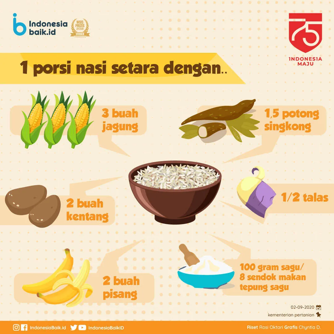 Deversifikasi pangan dapat diartikan dengan mengubah pola konsumsi masyarakat agar tidak tergantung pada 1 komoditas saja. Sebagai informasi, Indonesia punya 77 jenis pangan sumber karbohidrat dan 6 jenis pangan di antaranya merupakan sumber pangan pengganti beras.